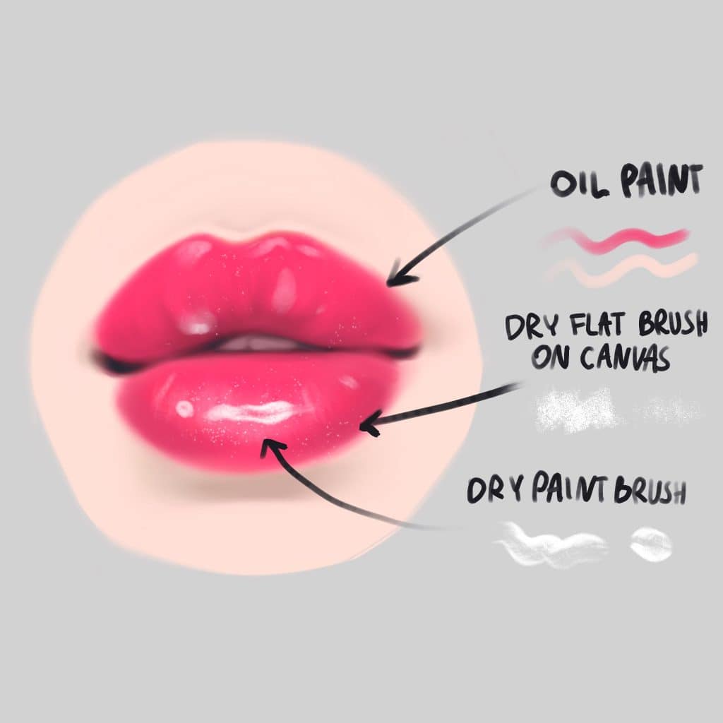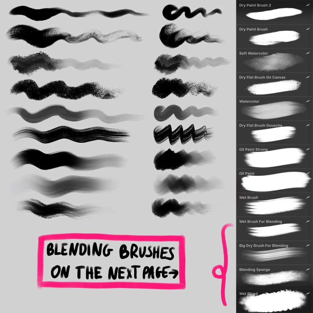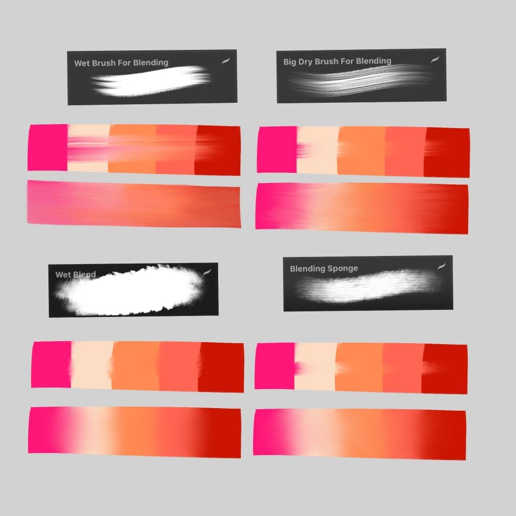 You can find brushes like watercolor paint, oil paint, and a few of blending brushes – for example blending sponge that creates a very smooth texture. For rough texture, you can use a big dry brush for blending.